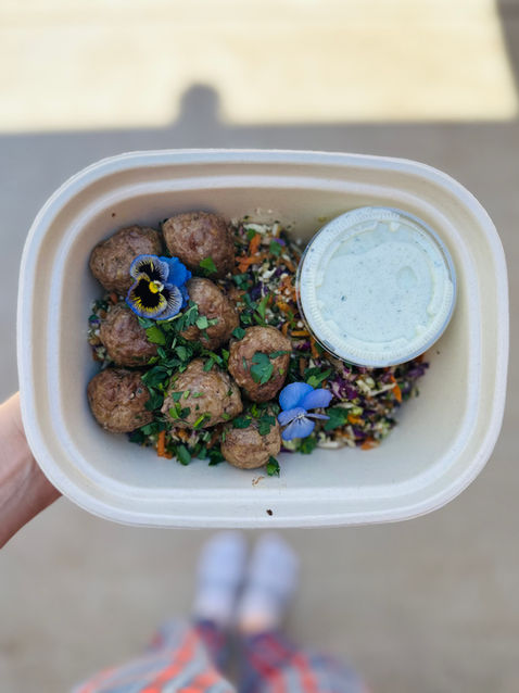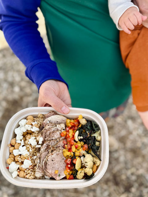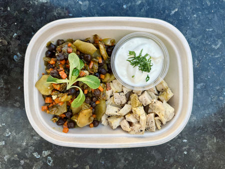 Steak, brown rice, seasonal vegetables and homemade salsa. Savor the flavors of perfectly seasoned local beef.